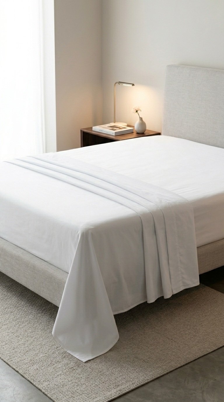 Sábana de diseño liso en color blanco, con acabado limpio, elegante y atemporal. Su apariencia suave y fresca la convierte en una opción ideal para dormitorios modernos, minimalistas o de estilo hotelero. Perfecta para aportar sensación de orden, luminosidad y confort al espacio.