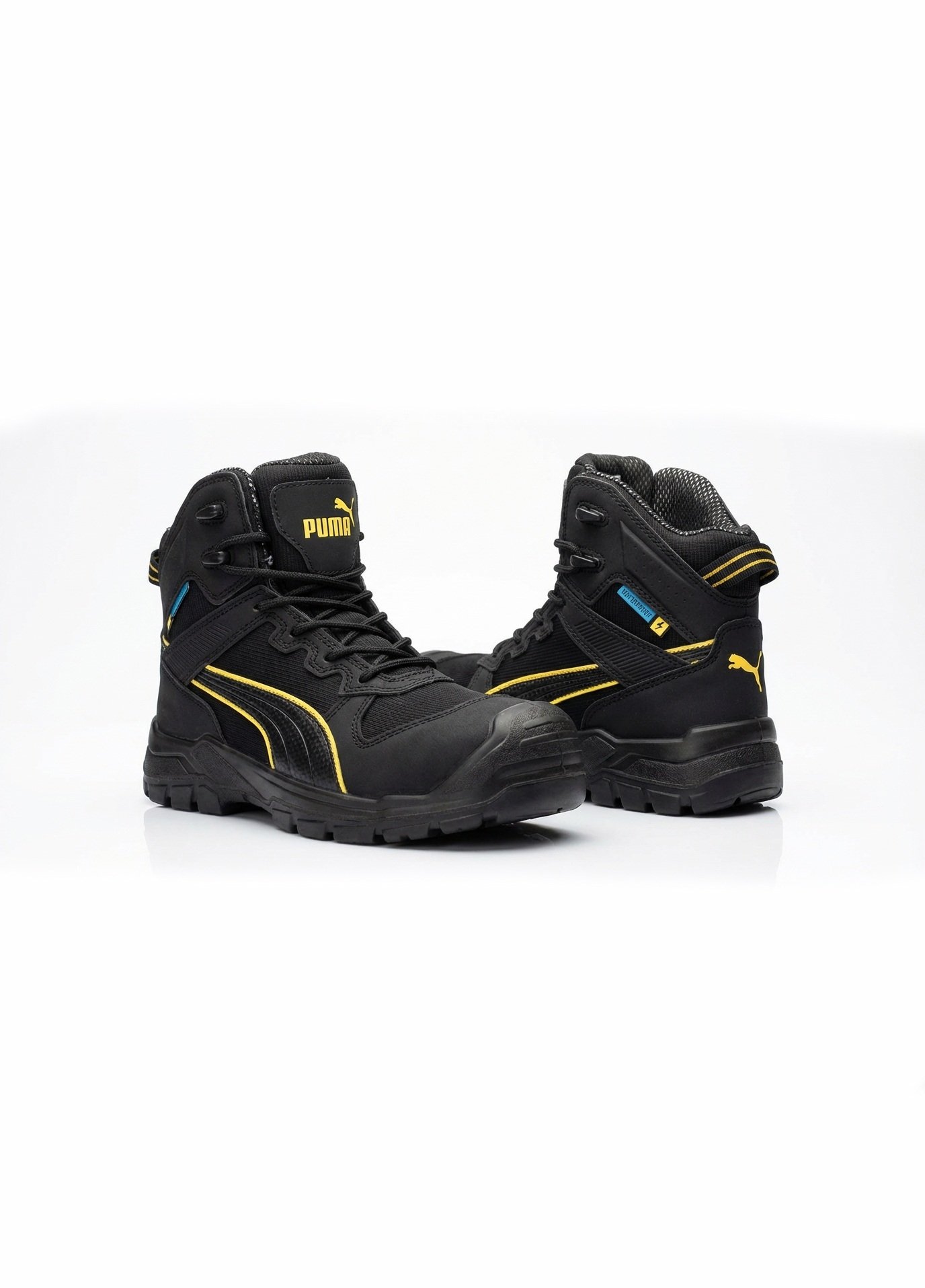 Calzado de seguridad de caña alta diseñado para ofrecer mayor protección en entornos industriales, construcción, logística y talleres. Incorpora punta de acero para reforzar la seguridad frente a impactos, junto con una estructura robusta, cómoda y resistente para largas jornadas de trabajo.